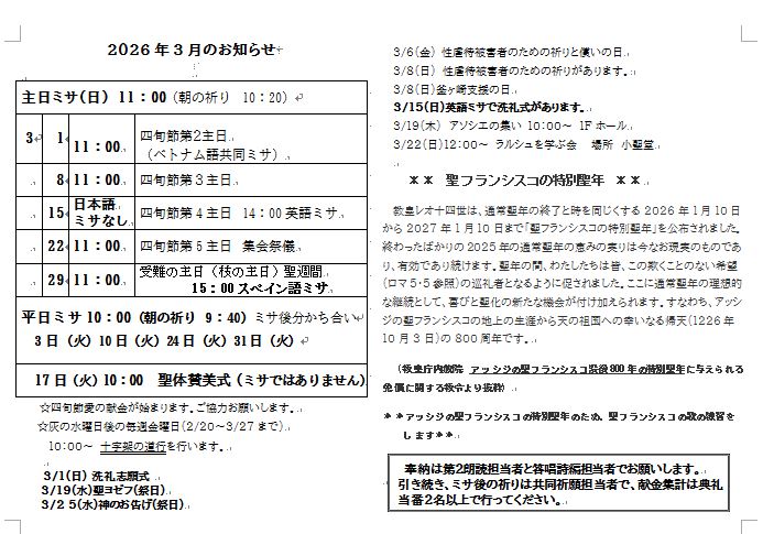 PDFはこちら⇒3月のお知らせ